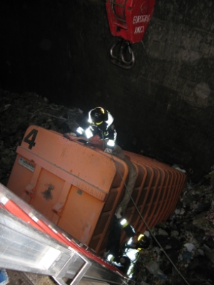 Incidente ad un camio all’inceneritore – Container scarrabile cade nel deposito dell’immondizia