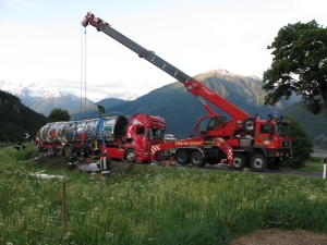 Lunedí 23. 05. 2011 alle ore 03:45 questo comando dei Vigili del Fuoco di Bolzano é intervenuto con una scquadra di Gru in sostegno ai vigili del Fuoco Volontari di Borgusio sulla strada della Val Venosta all´altezza di Borgusio .Un camion che trasportava siero di latte si é rebaltato lateralmente finendo fuori strada .Con una gru ed un vericello del carro atrezzi del Corpo Permenente é stato recuperato il camion e rimesso in strada , poi é stato rimorchiato da un carro atrezzi di una ditta privata.
