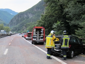 Alle 9:30 ca. le squadre del Corpo permanente dei Vigili del Fuoco di Bolzano sono state allertate per un intervento in autostrada. All'altezza del Km 74 si sono verificati probabilmente a causa dell´asfalto reso viscido da una perdita di olio, 2 incidenti stradali, che hanno coinvolto un totale di N.4 autovetture. Il primo incidente in ordine cronologico é avvenuto sulla corsia sud presso il km 73 ca. ed ha coinvolto un´autovettura guidata da una ragazza che si é ribaltata. La conducente é rimasta illesa. Il secondo incidente é avvenuto sempre sulla corsia Sud dell´autostrada circa 1.500 m a Nord del primo. Coinvolte in questo caso sono stati due SUV ( con rispettivamente 1 e 2 persone all´interno) ed una'autovettura Mercedes con 4 occupanti. L´autovettura Mercedes, con targa Germanica é stata prima tamponata, per poi terminare la sua corsa contro il Guardrail. I quattro occupanti, una famiglia con due bambini, sono stati trasportati verso l´ospedale di Bolzano mediante autoambulanza ed elicottero. Per permettere l´atterraggio dell´elicottero é stato necessario chiudere completamente al traffico l´autostrada nelle due direzioni di marcia. L´autostrada in direzione Nord é stata poi immediatamente riaperta, mentre in direzione Sud é rimasta chiusa per permettere a noi Vigili del Fuoco Permanenti di Bolzano ed al Corpo dei Vigili del Fuoco volontari di Chiusa di spargere materiale assorbente sull´asfalto. Alle 11:30, durante le operazioni di pulizia é stato soccorso, anche grazie anche ad un medico presente sul posto un automobilista che si é sentito male in auto mentre transitava in direzione Nord. Alle 12:00 circa sono stati terminate le operazioni di spargimento del materiale assorbente sulla sede stradale, e una corsia dell´autostrada in direzione Sud é stata riaperta.