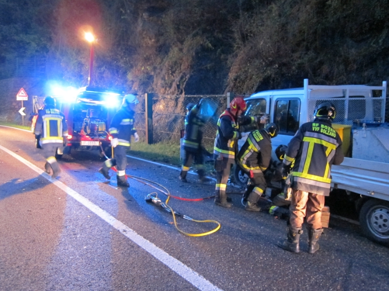 Verso le ore 6:30 il Corpo Permanente dei Vigili del Fuoco di Bolzano é stato chiamato ad un incidente stradale tra un'autovettura ed un cammioncino nei pressi di Prato Isarco all'altezza della Gastrofresh.