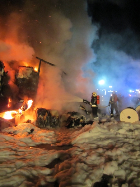 Mercoledí, 3 dicembre 2014 il Corpo Permanente di Bolzano é stato chiamato in intervento dalla Centrale Provinciale d'Emergenza sull'A22 corsia Nord al km 61.Un autotreno con targa straniera, che trasportava rotoli di carta, aveva preso fuoco. Accedere al luogo dell'intervento per i nostri mezzi di soccorso é stato di per sé complicato per i numerosi tunnel che sono presenti nel tratto di autostrada in corsia nord e per gli attuali cantieri autostradali. Fortunatamente i corpi dei vigili del fuoco volontari di Chiusa e Ponte Gardena venendo da Nord hanno potuto raggiungere piú velocemente il punto luogo d'intervento e hanno iniziato prontamente le operazioni di spegnimento dalla corsia Sud. Dopo un lungo impegno, intorno alle ore 06:45 l'incendio era sotto controllo, ma tutt'ora i lavori non sono terminati poiché tutti i rotoli di carta devono essere scaricati dal mezzo per permettere il loro completo spegnimento. Fino al momento in cui sará possibile il traporto del mezzo incidentato, l'autostrada ha istituito un by-pass per riaprire il traffico in direzione Nord nonostante ció si sono formate lunghe code in direzione Nord sia sull'autostrada che sulla strada statale.