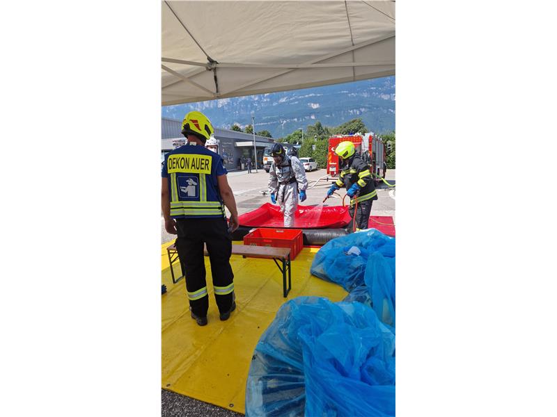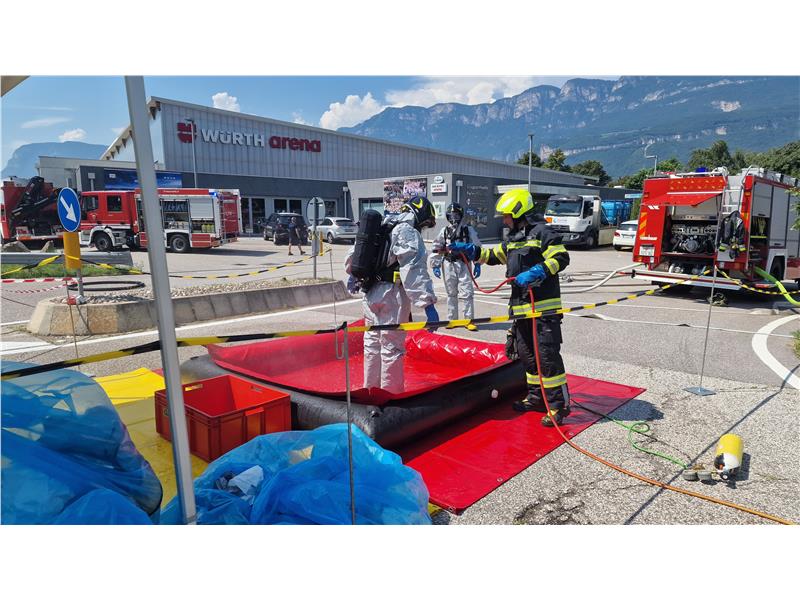 Oggi alle 10:18 la squadra per interventi chimici del Corpo Permanente dei Vigili del Fuoco di Bolzano, i vigili volontari di Egna e le squadre di decontaminazione dei vigili volontari di Ora, sono stati allertati per un incidente chimico presso il lido di Egna.