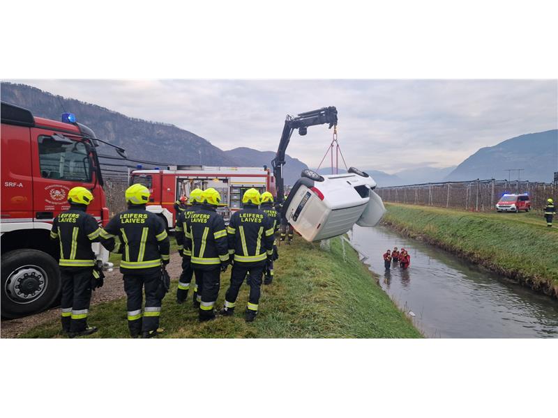 Il Corpo permanente dei Vigili del Fuoco di Bolzano è intervenuto insieme ai Vigili del Fuoco volontari di Bronzolo e Laives. Il gruppo sommozzatori distrettuale ha operato nel tratto d’acqua garantendo la sicurezza dell’area. Il Fiat Doblò è stato prima trascinato verso la riva con il mezzo di soccorso della VF Laives e successivamente sollevato sulla carreggiata mediante l’autogru del Corpo permanente dei Vigili del Fuoco di Bolzano.