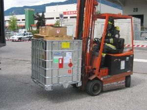 Un camion della FERCAM con all’interno due fusti di concentrato per l´industria di 500kg ciascuno era parcheggiato davanti alla sede della ditta FERCAM. Uno dei due contenitori aveva perso del liquido dal rubinetto di scarico.