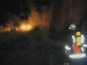 Foto BFBZ VVFBZAlle ore 21.00 della sera del 28.02.2005 le squadre del Corpo permanente dei Vigili del Fuoco di Bolzano sono state chiamate ad intervenire per un incendio presso il magazzino di frutta Frubona in via Castel Firmiano nel comune di Bolzano. L’allarme e pervenuto contemporaneamente da parte del 112, 113, 118 e da un passante. Alle squadre arrivate sul posto si presentavano fiamme alte alcuni metri in zona cortile, dove sono accatastate le casse in plastica, adiacente alle mura del magazzino. Subito è partito un massiccio primo attacco con acqua e contemporaneamente sono stati richiesti rinforzi dai Vigili del Fuoco Volontari di Gries e Bolzano. Dopo ca. mezz’ora l’incendio era sotto controllo e il capannone stesso ha subito solo danni lievi.